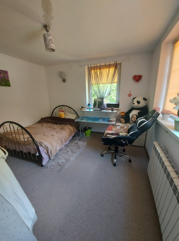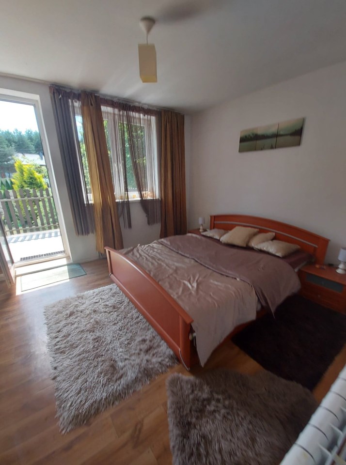 Na piętrze znajduje się duży pokój który stanowi centralną część mieszkania z tego pokoju wchodzi sie do pozostałych pomieszczeń: kuchni, łazienki, 2 sypialni, jedna z garderobą oraz na piętrze jest duży taras częściowo zadaszony.