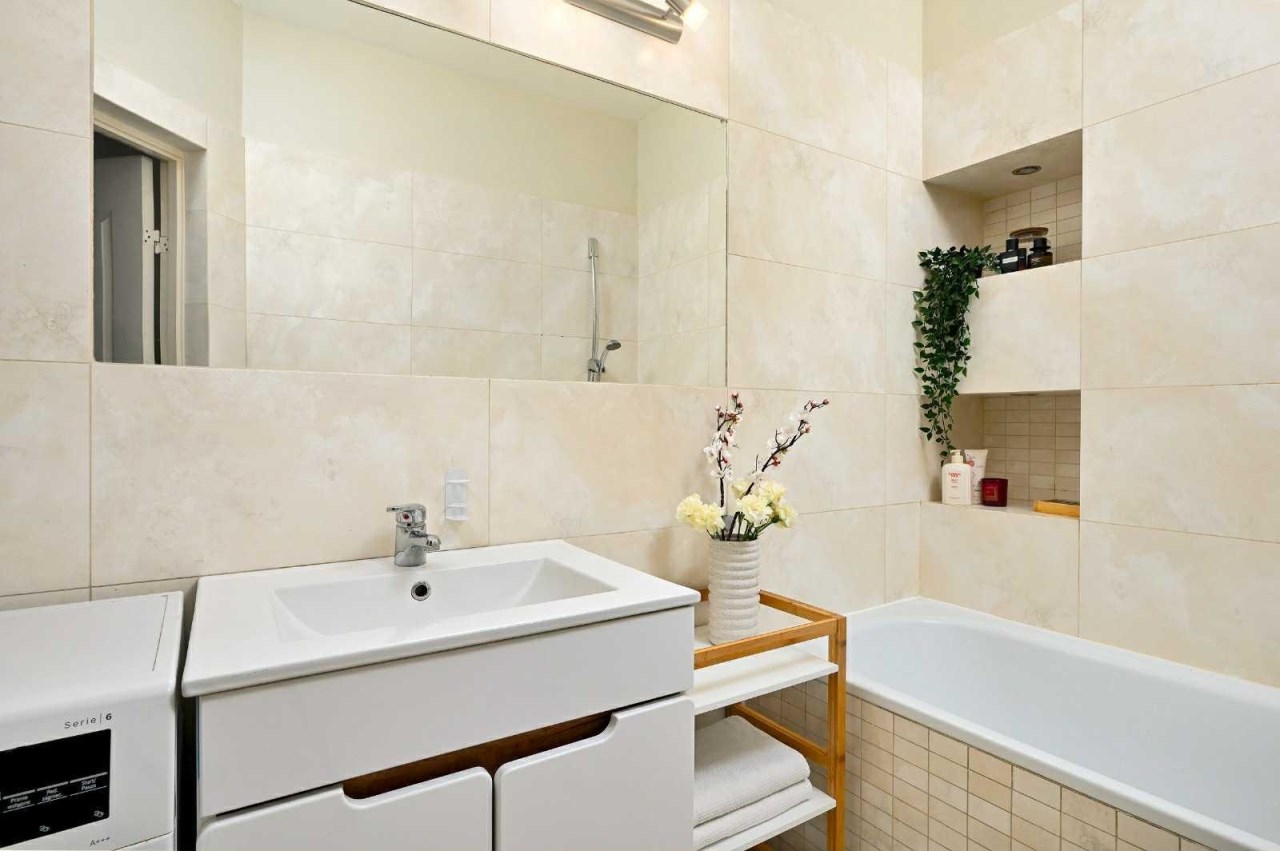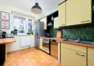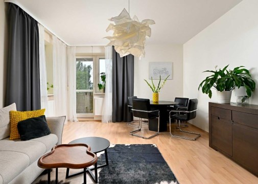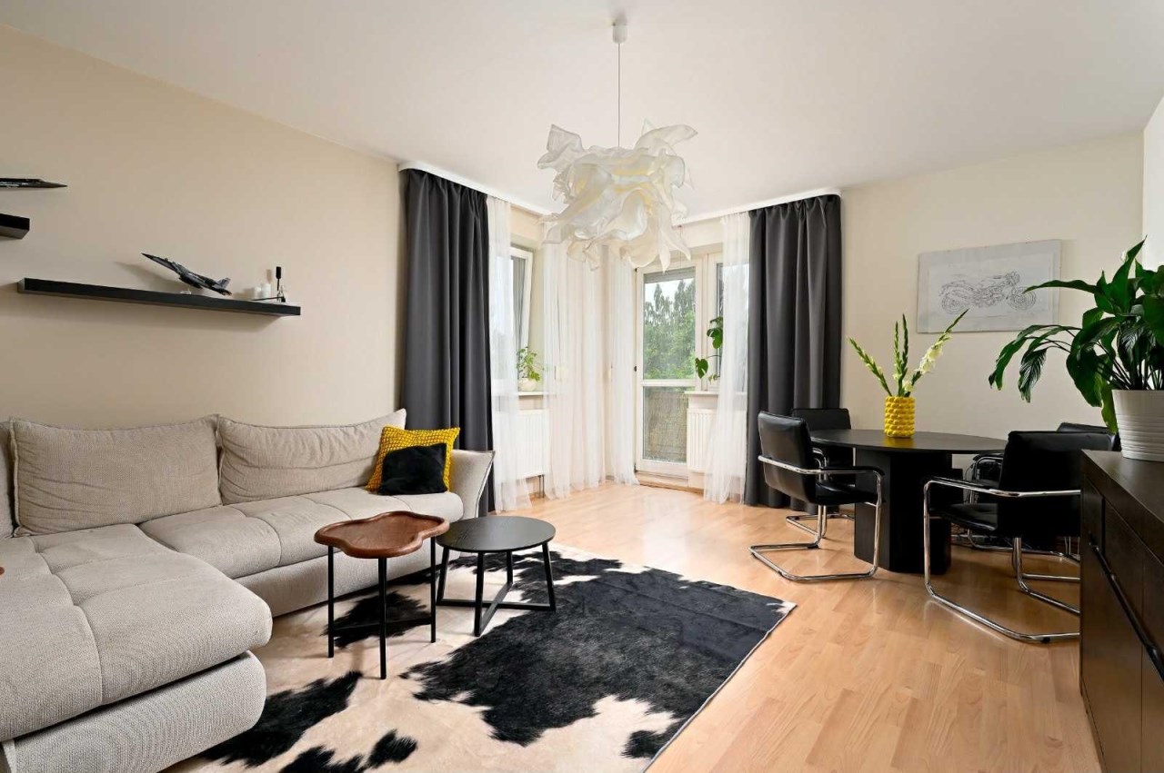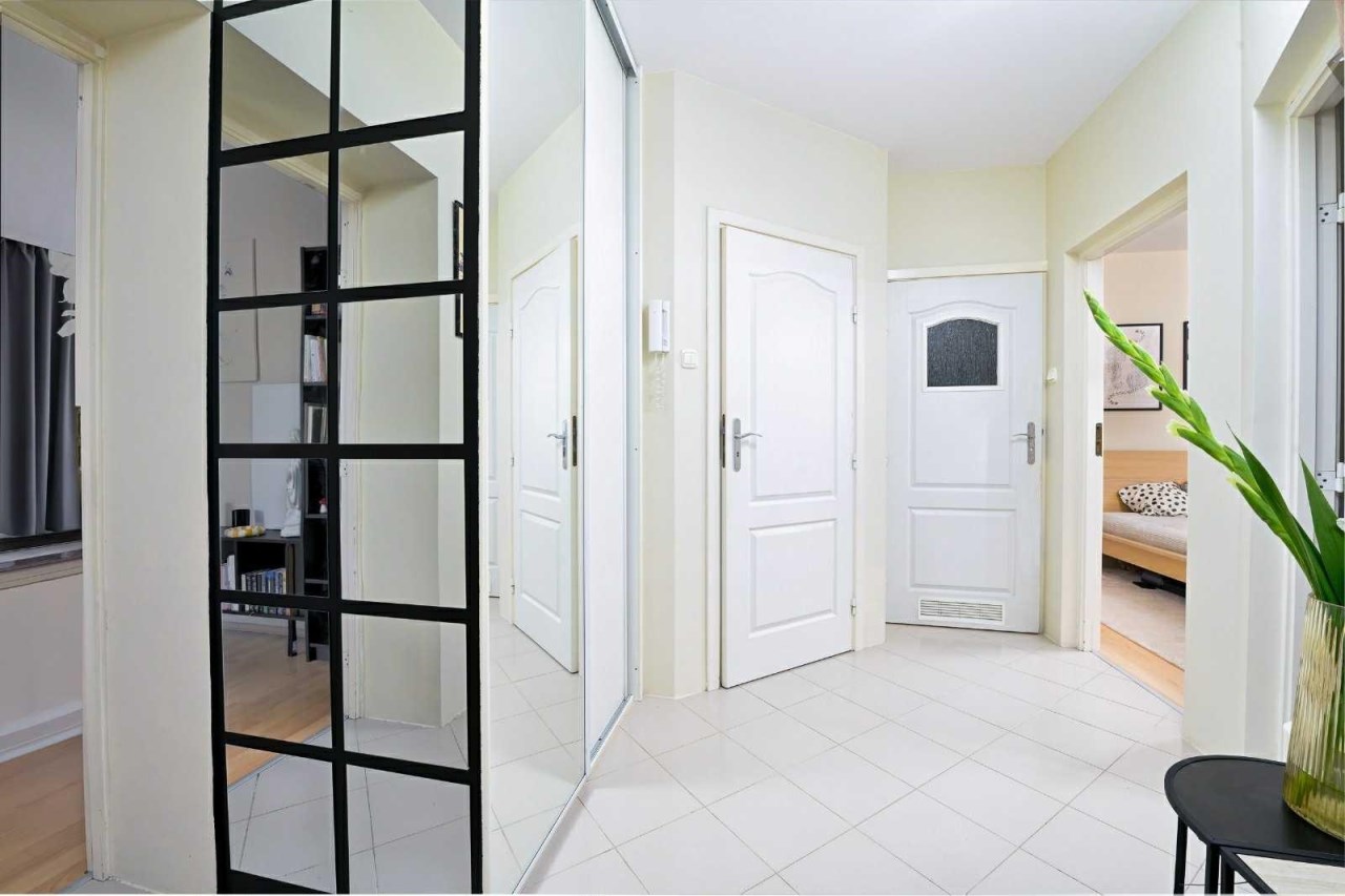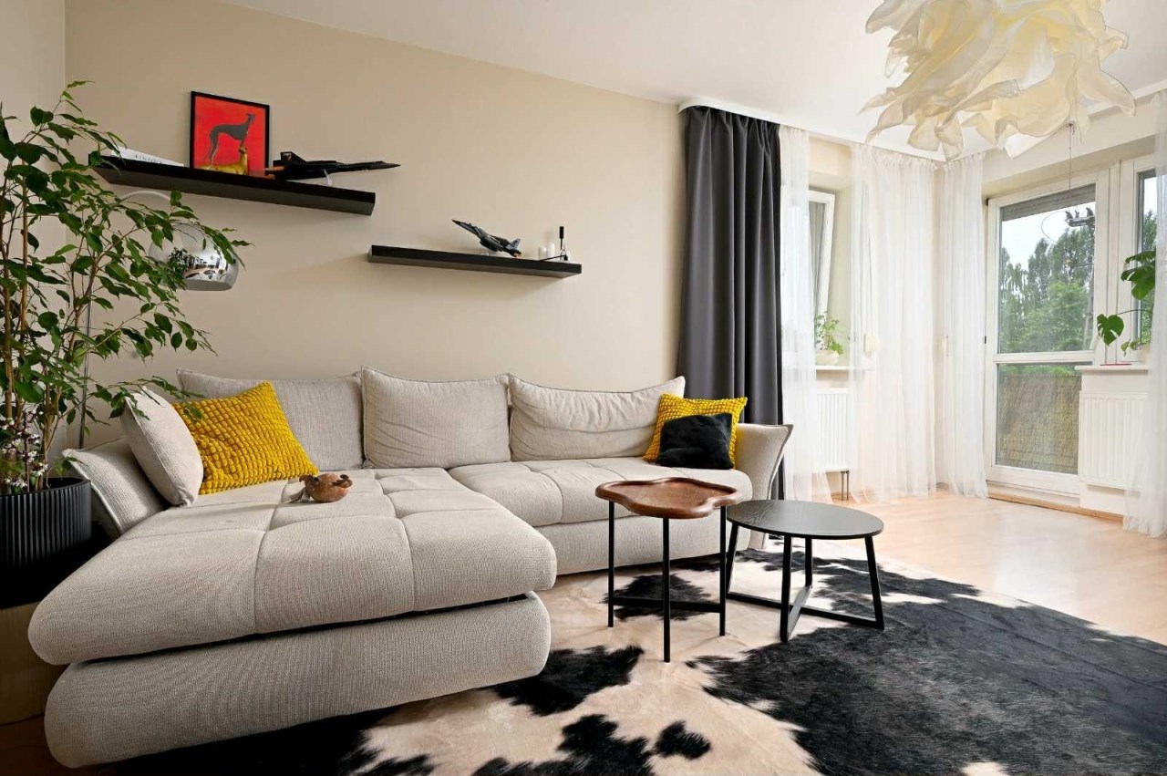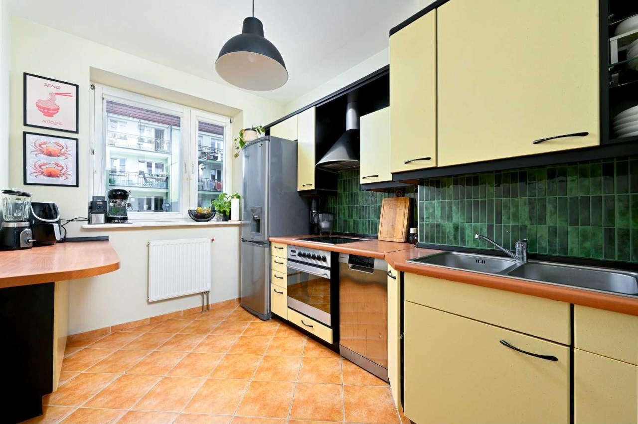 Wnętrze mieszkania jest jasne i przytulne, dzięki oknom usytuowanym na trzy strony świata. Duży salon tworzy przestronną i komfortową atmosferę, a oddzielna kuchnia, wyposażona jest w sprzęt AGD oraz meble w zabudowie. Mieszkanie jest w dobrym stanie, gotowe do zamieszkania – wystarczy wnieść własne rzeczy.