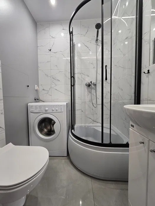 łazienka z kabiną prysznicową i WC