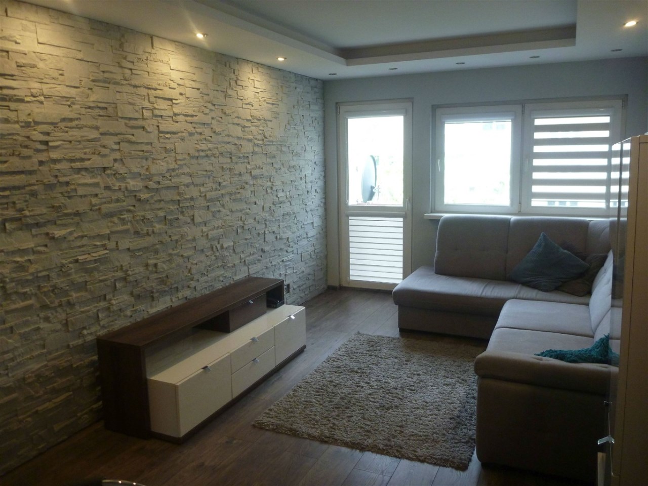 Mieszkanie znajduje się na 4 piętrze w czteropiętrowym bloku. Na powierzchnię 45 m2 składają się dwa pokoje, oddzielna kuchnia i łazienka.
