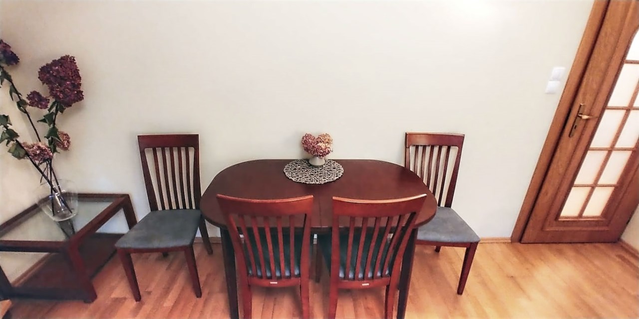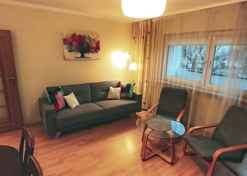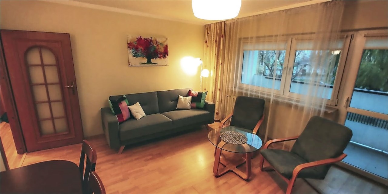 Salon z dużym balkonem w pełni umeblowany- okna z wystawą na zachód.